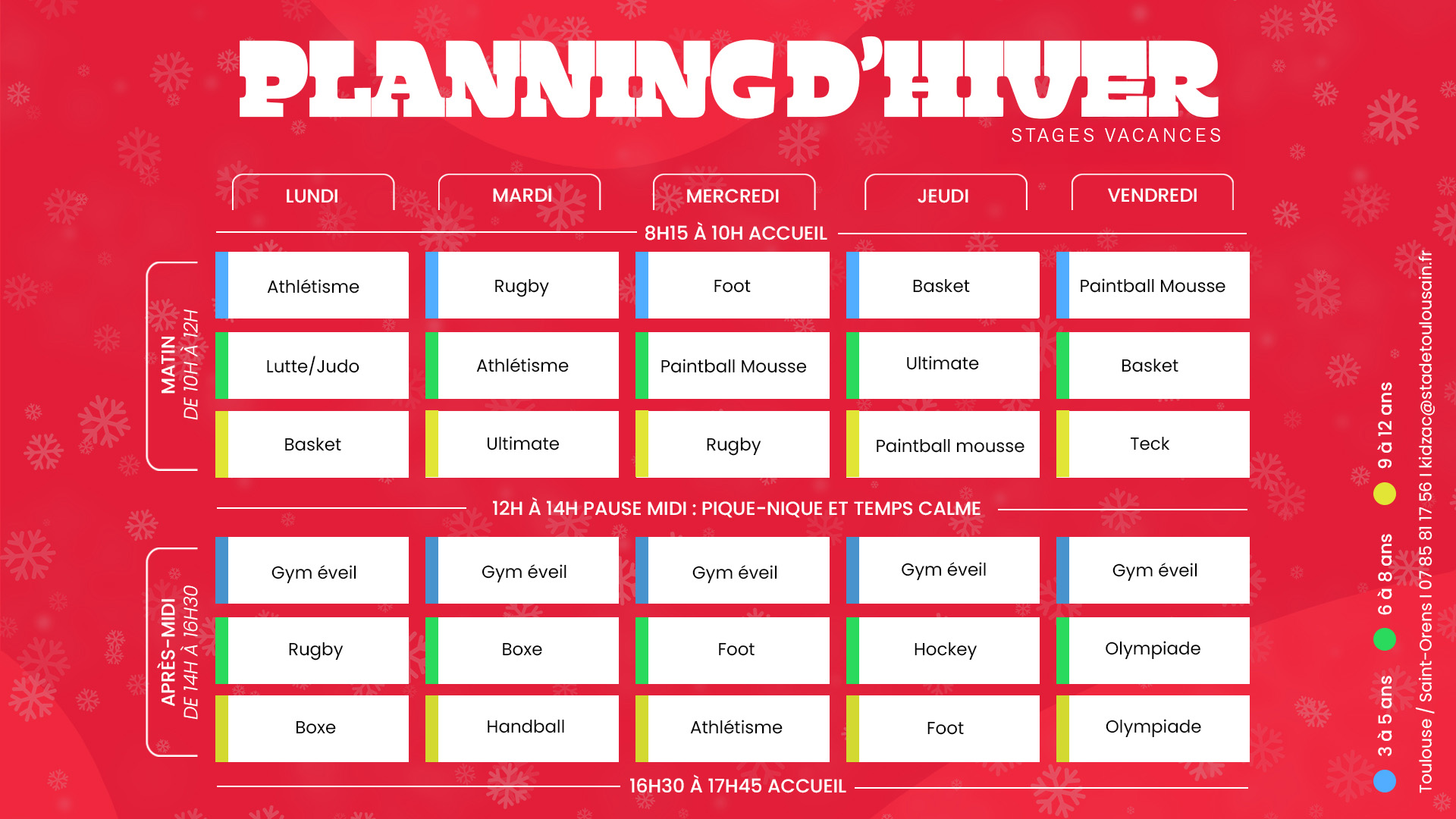 Planning Stages vacances Hiver 2026 KidZ'Ac